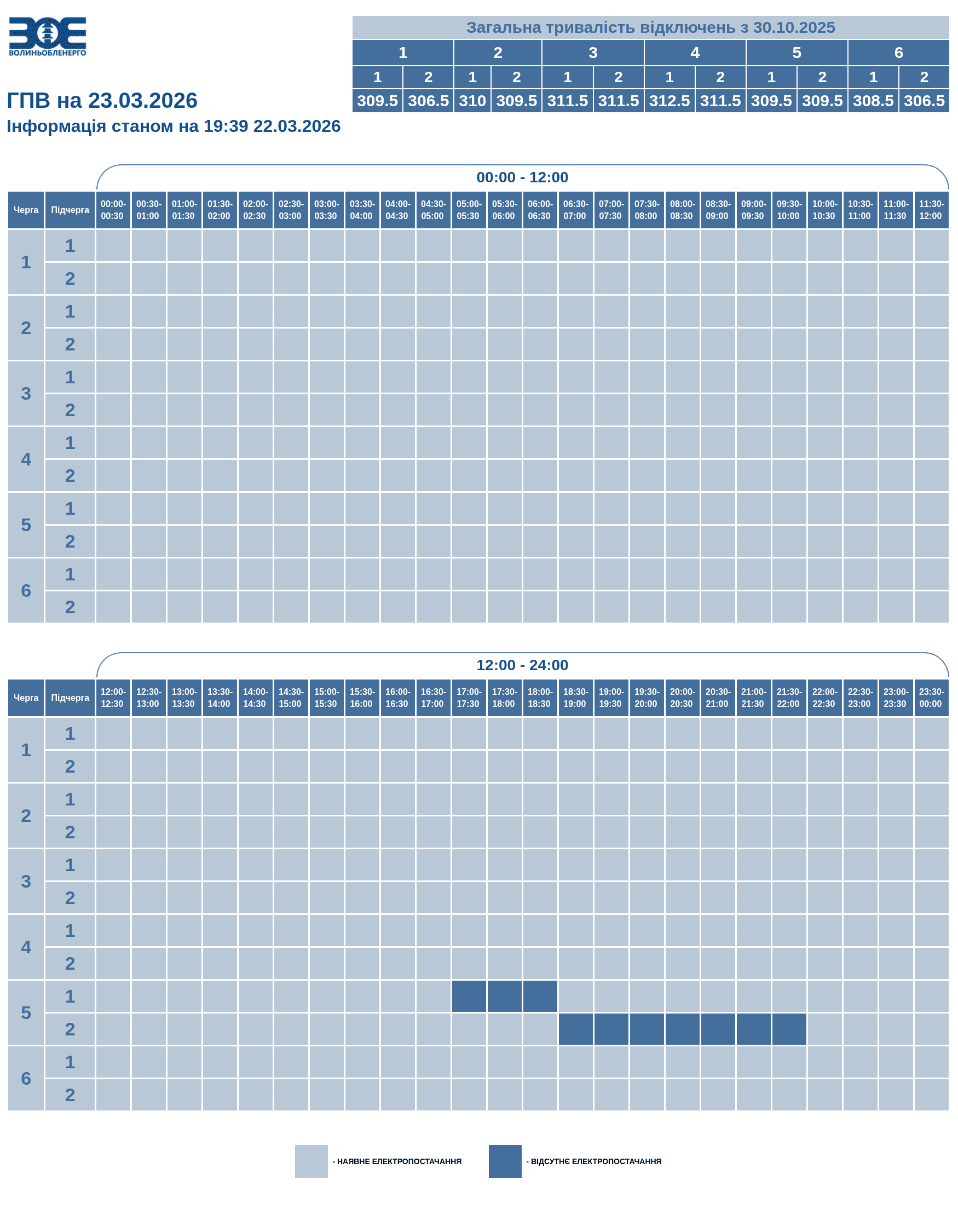 Графік відключення світла на Волині 23 березня