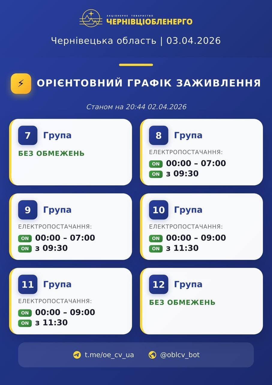 Відключення світла в Україні у п’ятницю, 3 квітня