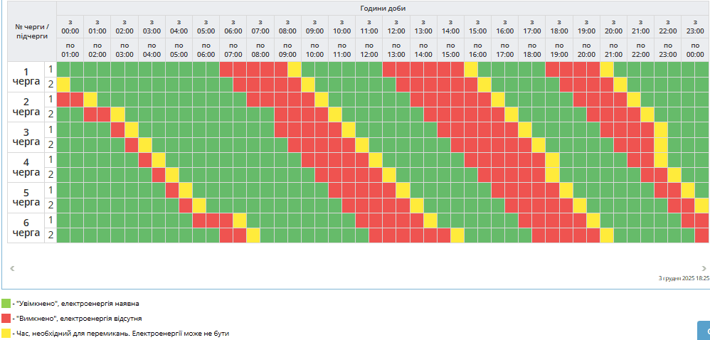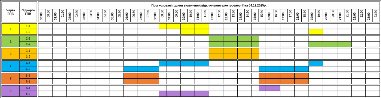 В усіх регіонах Україні у четвер, 4 грудня діятимуть графіки погодинних відключень світла. Причина відключень — наслідки російських атак на українську енергосистему.