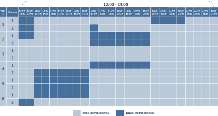 Графік відключення світла у Дніпропетровській області