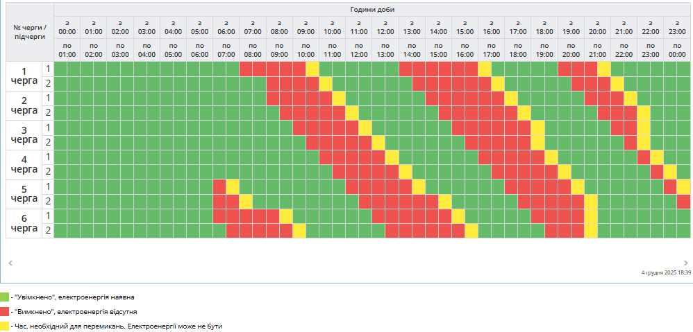 ДТЕК анонсував графіки погодинних відключень світла на п1ятницю, 5 грудня, для столиці та всіх регіонів України.
