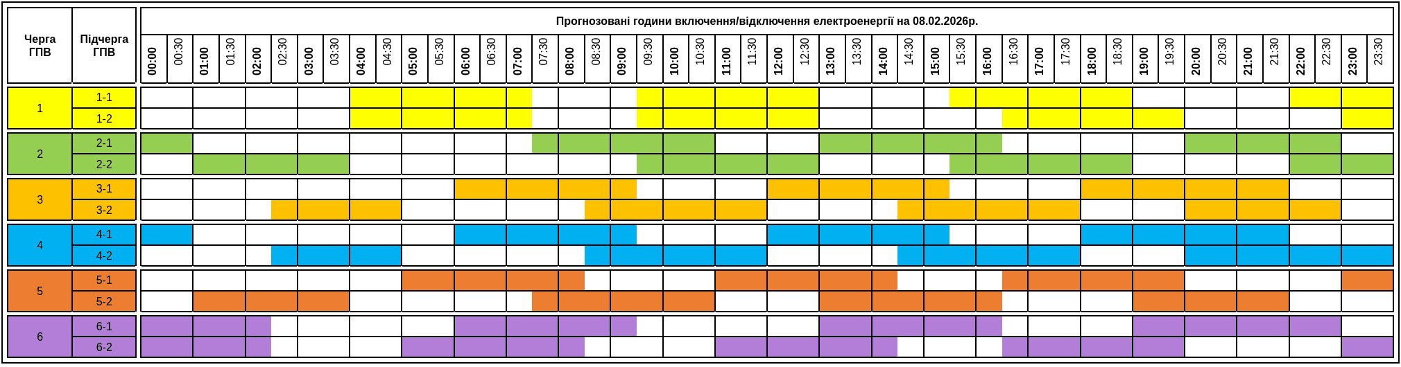 Черга 6.1: 00-02, 03-06, 07-10, 11-14, 15-18, 19-22, 23-24
