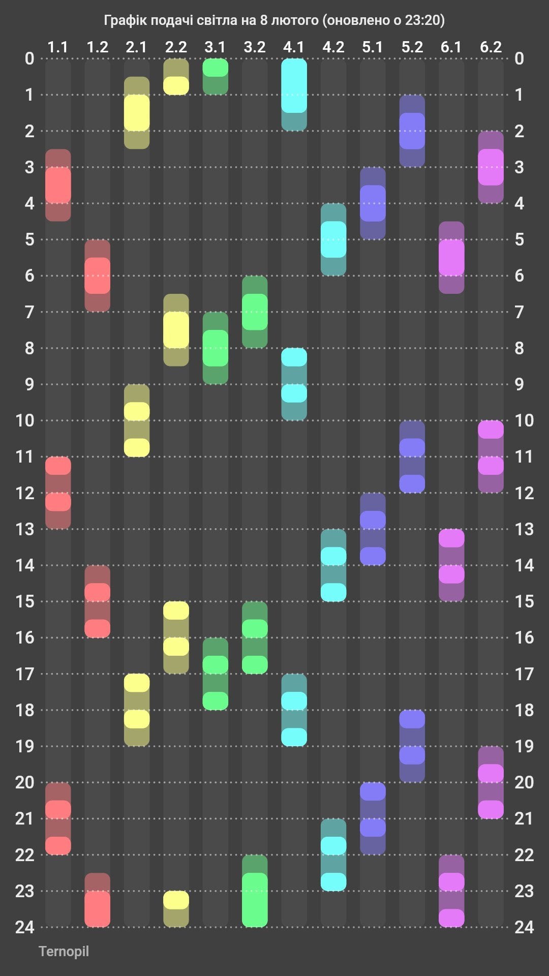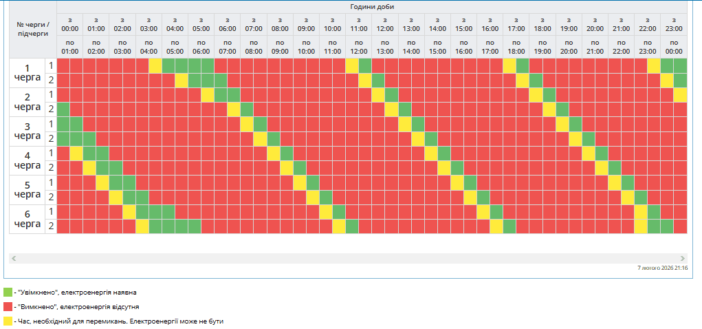 Черга 6.2: 00-02, 03-06, 07-10, 11-14, 15-18, 19-22, 23-24