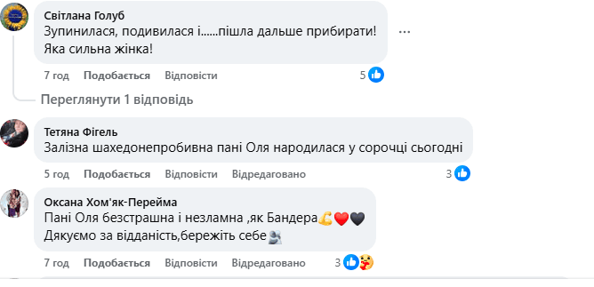 Пані Оля стала справжньою героїнею українських соцмереж. Люди масово поширюють відео з нею, захоплюючись її спокоєм та витримкою під час обстрілу: