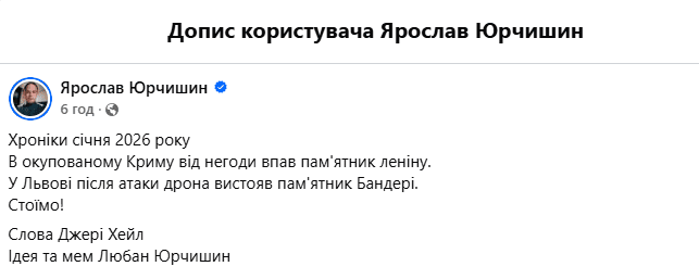 Уранці 15 січня російський дрон атакував центральну частину Львова. Безпілотник упав на дитячий майданчик приблизно за 40-50 метрів від пам’ятника Степану Бандері, що розташований у зоні історичної спадщини ЮНЕСКО.