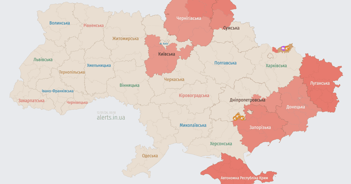 Україну в ніч проти 12 січня атакують ворожі безпілотники типу Shahed.