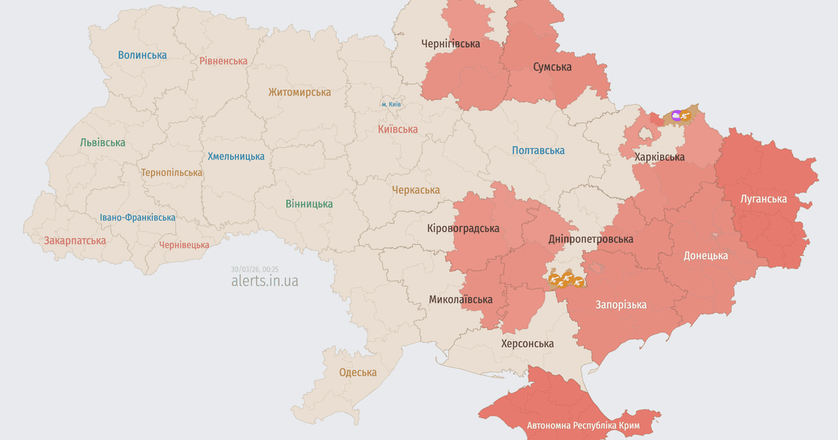 Україну в ніч проти 30 березня атакують ворожі безпілотники типу Shahed.