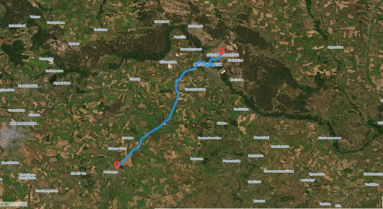 Бахмут-Сєвєродонецьк, скриншот / mistaua.com