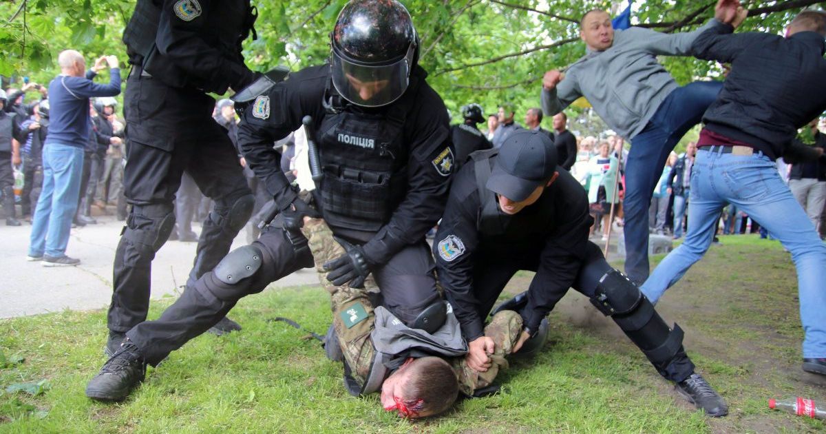 9 травня в багатьох містах України відбулися сутички. У Дніпрі на підходах до пам'ятника Слави людей перевіряли металошукачами та вилучили кілька пістолетів, ножі та газові балончики. Однак ні це, ні велика кількість правоохоронців сутичкам не завадили – їх було кілька, проти АТОвців виступили спортсмени з однаковими помаранчевими наклейками на одязі, що супроводжували депутата від "Опозиційного блоку" Олександра Вілкула. Поліція не лише не перешкодила молодикам, але й не затримувала нікого – вони й далі продовжили хід.