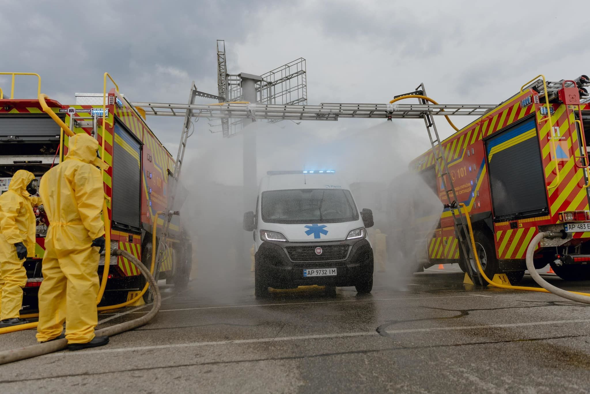У межах тренувальних заходів розгорнуті контрольно-санітарні пости для перевірки транспорту, який виїжджає з населених пунктів. Тут є техніка для замірів радіаційного фону, також здійснюють огляд та обробку автомобілів і евакуйованих людей.