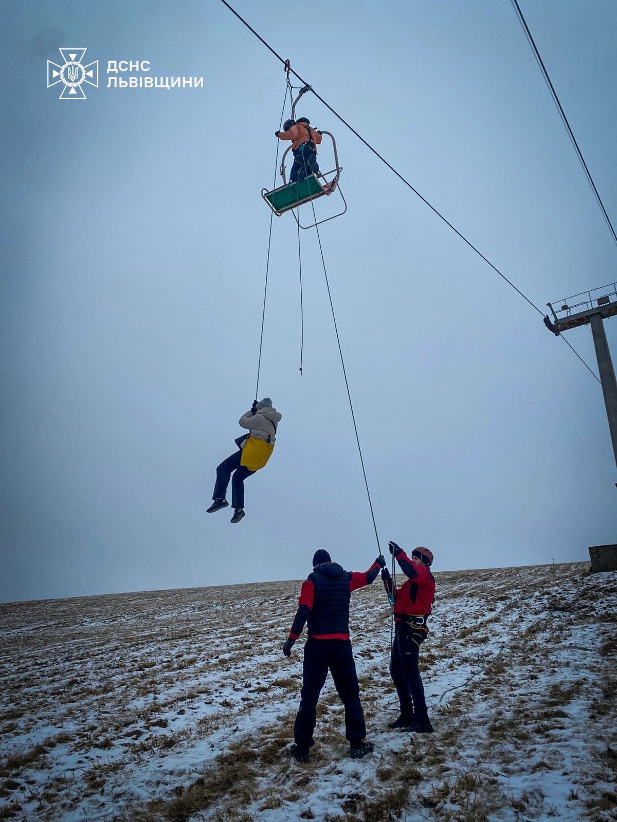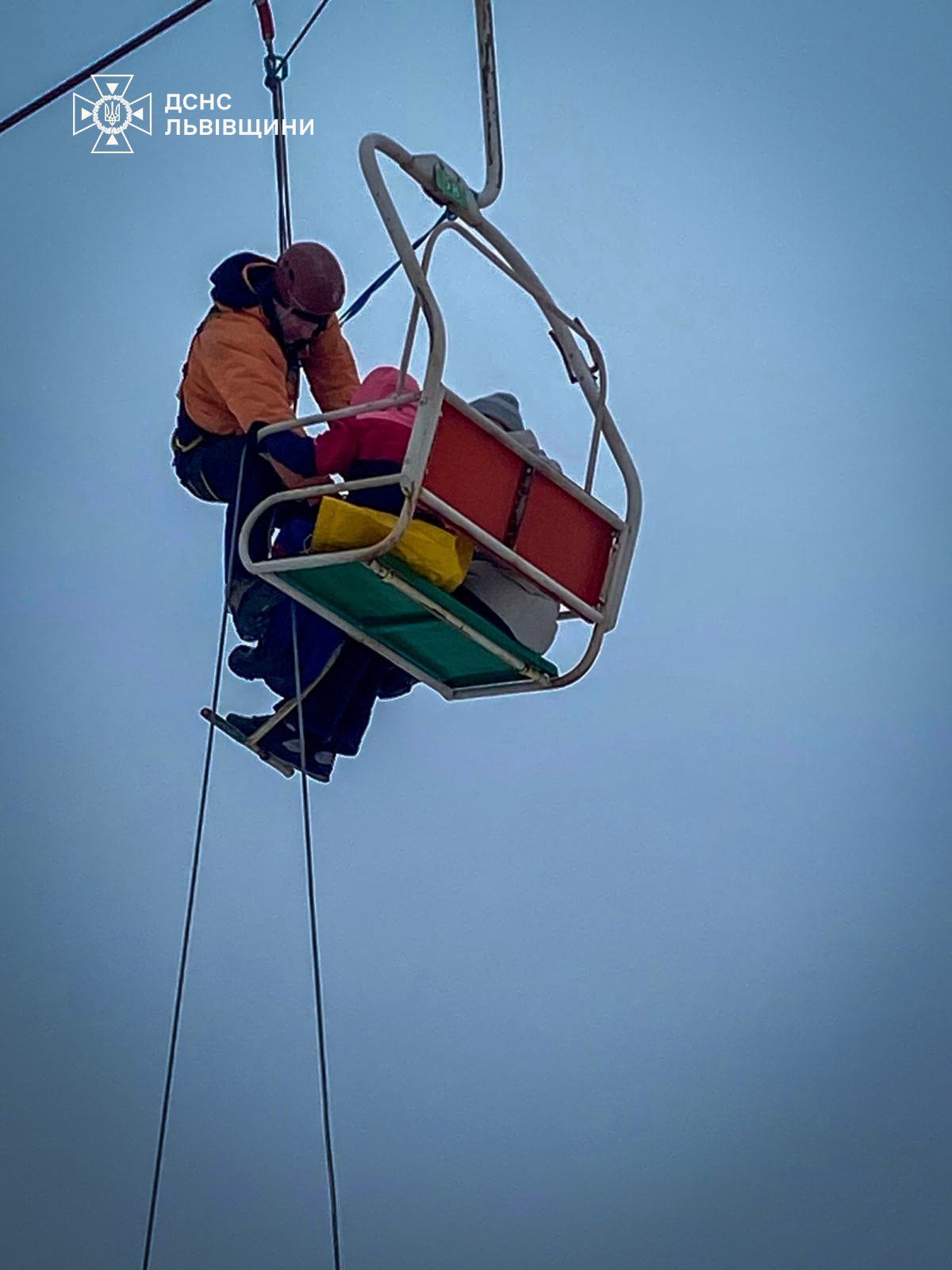 Рятувальники зняли 78 людей із крісельного підйомника, який зупинився на горі Захар Беркут у селі Волосянка Львівської області. Роботи тривали дві години.