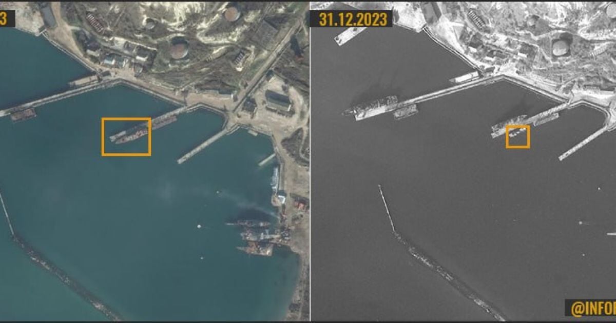 "З огляду на порівняльний аналіз супутникових знімків та даних із джерел HUMINT-InformNapalm у Севастополі, затоплення корабля сталося, ймовірно, 29-30 грудня. Наприклад, 29.12.2023 близько 12:00 місцеві жителі повідомляли у соціальних мережах про гучні вибухи, проте жодних офіційних коментарів окупаційна влада Севастополя не надавали", – повідомляють в InformNapalm.