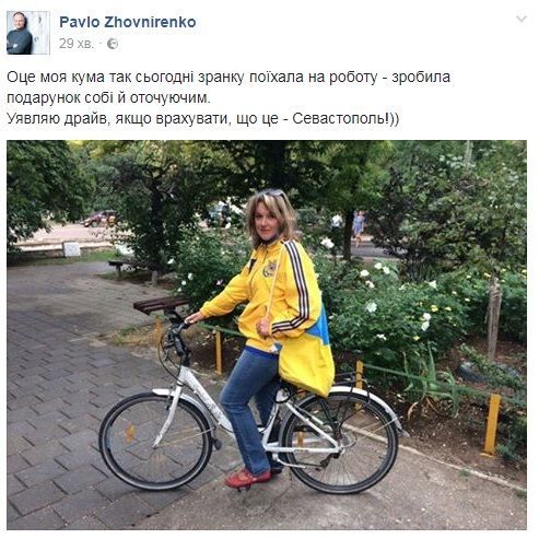 "Україно! Найщиріші патріоти з Севастополя вітають тебе з Днем Державного Прапора і Днем Незалежності! Між собою ми називали це флешмобом, ну, а просто зателефонували друзям, друзям друзів і їхнім знайомим і запропонували сфотографуватися в центрі Севастополя, щоб показати, що в Криму є справжні патріоти України і що не можна материковим українцям відмовлятися від Криму. Багато познайомилися просто на місці, багато хто хотів, але не змогли прийти через життєві обставини, були і такі, хто відверто побоявся, хоч і уболіває, були і такі, хто пізніше журився, що не знав про флешмоб. Ми обговорили між собою, що якщо хтось побоюється переслідування з боку влади, то можна заретушувати, проте ніхто не висловив такого бажання", - зазначила користувачка Facebook Lara Mos.