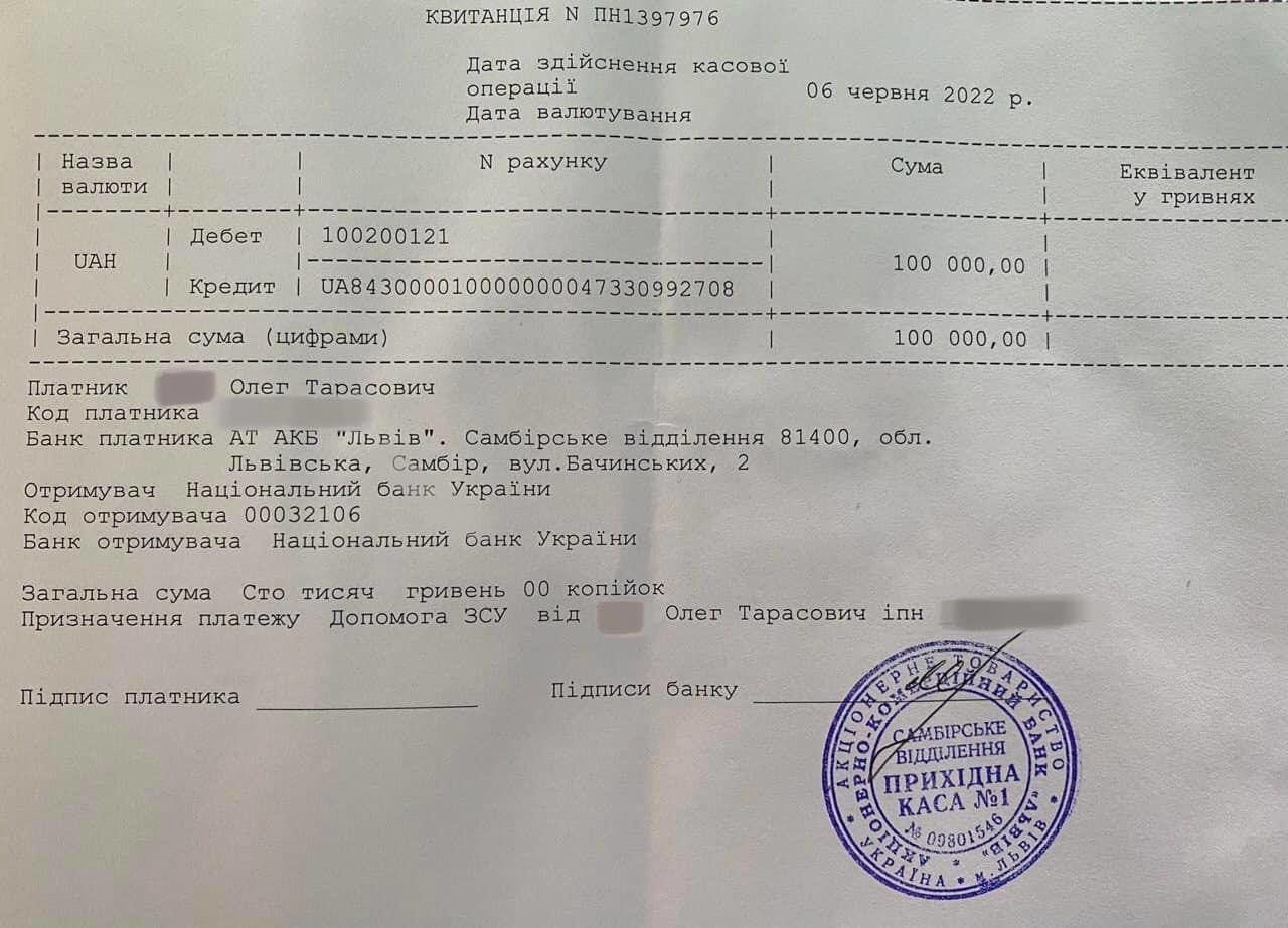 Вони перерахували 100 тисяч гривень на потреби ЗСУ.