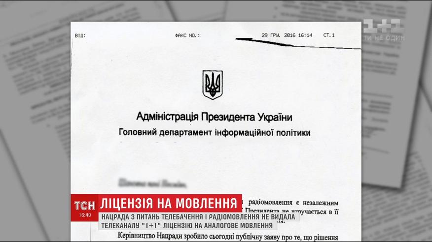 "1+1" отримав офіційну відповідь на своє звернення від АП України