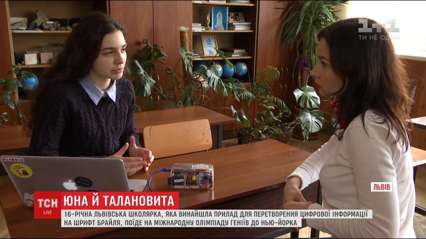 До Нью-Йорка Софія Петришин повезе свій винахід - пристрій, який перетворює цифрову інформацію на шрифт Брайля. З цією розробкою дівчина уже перемогла на всеукраїнському конкурсі "Інтел Техно", тепер хоче вдосконалити її і вийти на міжнародний рівень.