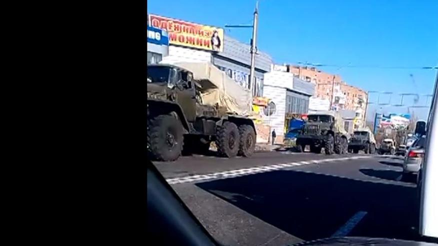 У складі колони рухаються 8 «Уралів», які судячи з всього, перевозять снаряди, а також 11 «Градів». Супроводжують колону декілька вантажівок та легкових автомобілів з бойовиками.