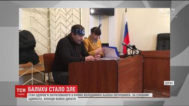 Балуху важко дихати, розповіла адвокат. Ще 19-го березня на знак протесту проти незаконного вироку Володимир Балух оголосив голодування і припиняти його попри погіршення стану не збирається, запевняє адвокат. За український прапор на власному будинку окупаційна влада Криму присудила активісту три роки та п'ять місяців в'язниці.