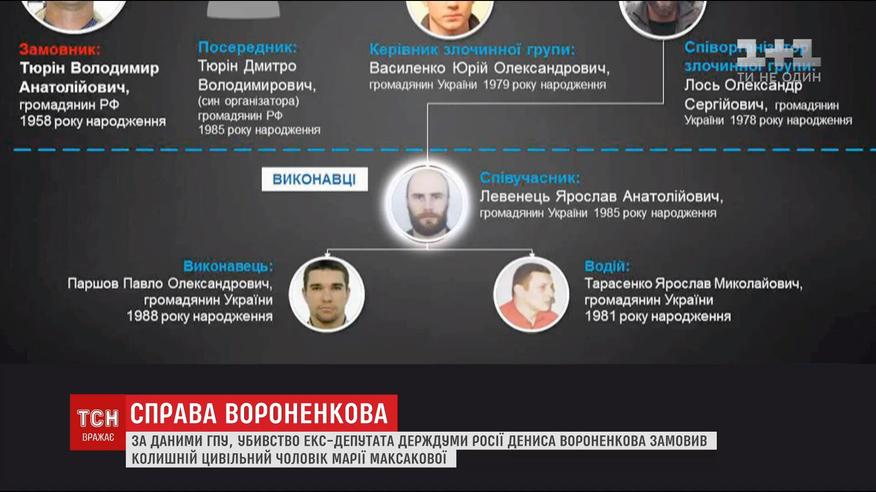 Після піврічного розслідування вбивства екс-депутат Держдуми у Генпрокуратурі демонструють схеми, записи з камер спостереження та телефонні розмови. Замовником убивства називають громадянина Росії, Володимира Тюріна - неодноразово судимого за крадіжки, хуліганство та зґвалтування, який упродовж 8-ми років був цивільним чоловіком Марії Максакової. Від нього вона народила сина та доньку.
