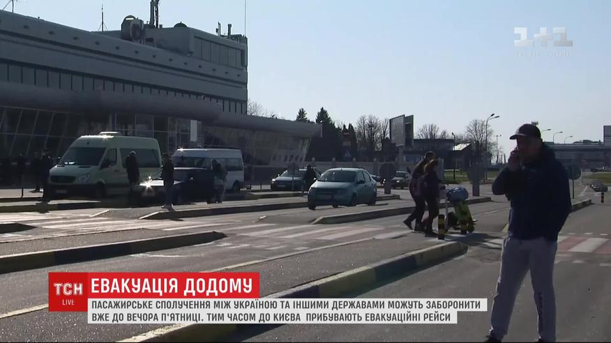 Україна приймає евакуаційні рейси з різних держав. Вдень, 25 березня, до Києва прибув вже десятий потяг з польського Перемишля із 6 сотнями громадян. Невпинно приймає рейси і аеропорт "Бориспіль" - єдине летовище, яке ще не закрили для пасажирських перевезень. Для спецрейсів там відкрили термінал "В", який зазвичай не працює. В нього неможливо зайти, лише вийти. Більше про коронавірус в Україні