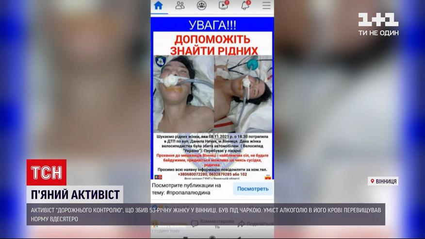 Активіст "Дорожнього контролю", який збив велосипедистку у Вінниці, був напідпитку. Уміст алкоголю в його крові вдесятеро перевищував норму. І хоча ДТП сталася минулого тижня, результати оприлюднили лише зараз. 53-річна жінка - у комі в реанімації. Подробиці – далі.