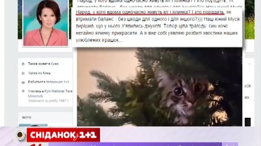 На своїй сторінці у «Фейсбук» ведуча «ТСН. Тиждень» запитала поради у користувачів, як в домі одночасно тримати кота і ялинку, на яку чотирилапий постійно дереться.