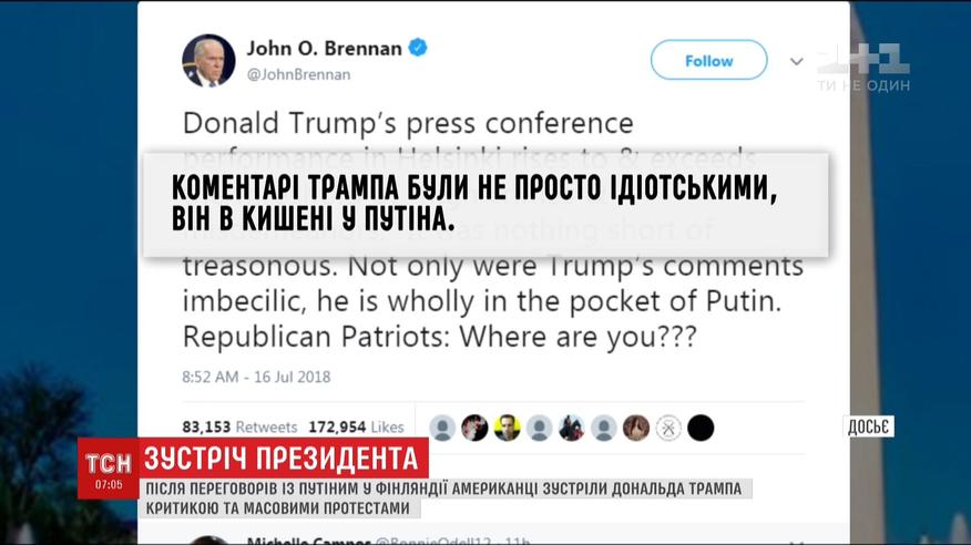 Це - зрада. Численні республіканці, які зазвичай підтримують Трампа, один за одним засудили поведінку свого президента на зустрічі з Путіним. Серед них - спікер Конгресу Пол Раян та лідер республіканської більшості Мітч Макконнел. Що найбільше збурило американців – у сюжеті ТСН.