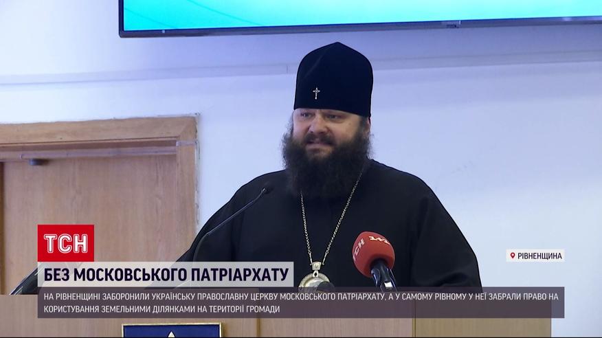 На Рівненщині заборонили Українську православну церкву московського патріархату, а в самому Рівному в неї забрали право на користування земельними ділянками. 10 квітня відбулись одразу дві позачергові сесії обласної та міської рад. І обидві стосувалися тільки московського патріархату. Заявити про незгоду з намірами заборонити УПЦ до обласних депутатів прийшов архієпископ рівненський і острозький Пимен із групою підтримки. Депутатів слова священнослужителя московського патріархату не переконали і вони одноголосно проголосували за заборону УПЦ МП у Рівненській області.