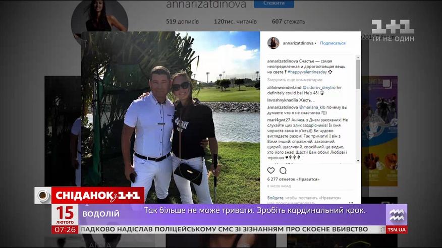 У день усіх закоханих українська гімнастка, бронзова призерка Олімпійських ігор 24-річна Анна Різатдінова вперше опублікувала світлину в обіймах батька своєї дитини, 48-річного депутата-втікача Олександра Онищенка. Тривалий час Анна і Олександр приховували свої стосунки. Навіть після народження дитини спортсменка мовчала, хто батько. Можливо через те, що в Україні і досі тривають розслідування у справі Онищенка, а його самого оголошено у розшук.