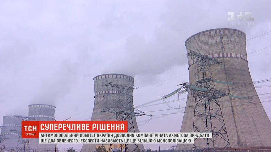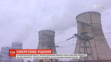 Антимонопольний комітет України дозволив одній із компаній Ахметова - ДТЕК - придбати ще дві обленерго - Київське та Одеське. Фахівці з енергетики обурені таким рішенням, адже воно, мовляв, призведе до ще більшої монополізації ринку. Профільний експерт Андрій Герус каже - тепер компанія Ахметова не лише матиме 80% усього вугілля та всіх вугільних електростанцій, а й 42% всіх розподільчих електромереж та майже половину роздрібного ринку постачання електрики.