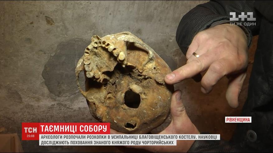 На Рівненщині розпочали розкопки в усипальниці Благовіщенського костелу. Офіційно досліджень тут не проводили понад сто років, кажуть ініціатори розслідування. І їхні пошуки не були марними - просто на очах журналістів ТСН археологи знайшли ще одне поховання.