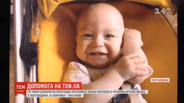 Допомоги потребує дворічний Артемко Махно з Полтавщини. Більше року малюк бореться з раком крові. Хіміотерапія в Україні не подіяла, але новітні методики в Ізраїлі дали йому реальний шанс на здорове й щасливе життя. Лишилось зібрати 75 тисяч доларів на пересадку кісткового мозку.
