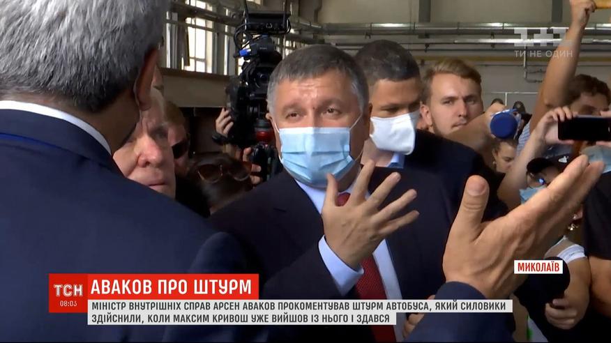 Усередині луцького автобуса могли бути спільники терориста, а також існував ризик підриву вибухівки. Так міністр внутрішніх справ Арсен Аваков прокоментував штурм силовиками автобуса, коли Максим Кривош уже вийшов із нього та здався. Також Аваков повідомив, що на вимогу терориста відкрив можливість коментувати на своїй сторінці у соцмережі. Допис, залишений там Максимом Кривошем, назвав шизофренічною маячнею й додав, що одразу видалив його, щойно терориста затримали. Дії своїх підлеглих та колег Аваков вважає виправданими й натякає на обставини, які наразі не оприлюднюють.