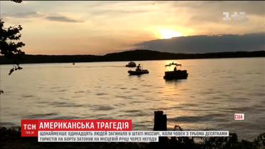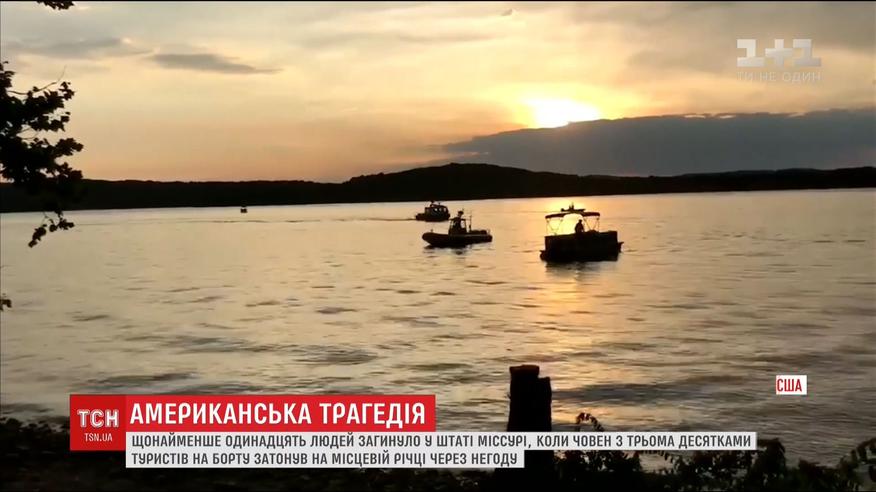 В американському штаті Міссурі затонув автомобіль-амфібія з трьома десятками людей на облавку. Загинуло щонайменше 11 пасажирів, ще семеро людей, серед яких і діти, потрапили до лікарні. Доля декого з туристів наразі невідома - на місці трагедії не припиняють працювати рятувальники. За попередніми даними, затонув човен через негоду.