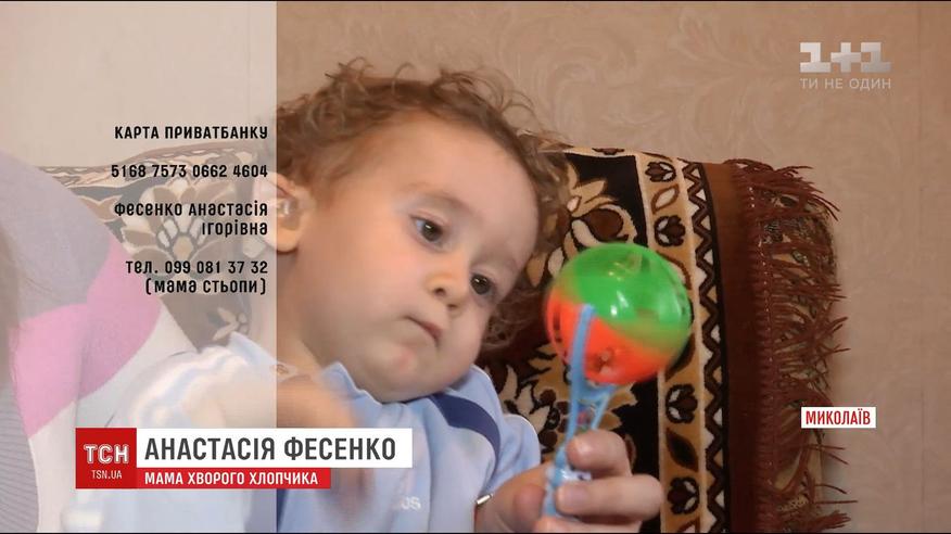 Маленький Степан Фесенко з Миколаєва народився цілком глухим. Хлопчика може врятувати лише операція зі встановлення на слуховий нерв спеціального апарата. Вона дуже проста і її вже багато років роблять в Україні, але чекати черги на безкоштовне встановлення можна роками. Тому родина збирає гроші на термінову операцію, але 800 тисяч гривень для родини - сума захмарна.