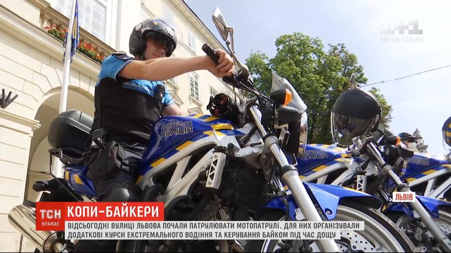 Львів відсьогодні почали патрулювати мотоекіпажі: наразі їх дев'ять. Обирали поліцейських у мотопатруль лиш із досвідом водіння на байках. Про всяк випадок для патрульних організували додаткові двотижневі курси. Зокрема, екстремального водіння та керування байком за будь-якої погоди. Детальніше – у сюжеті.