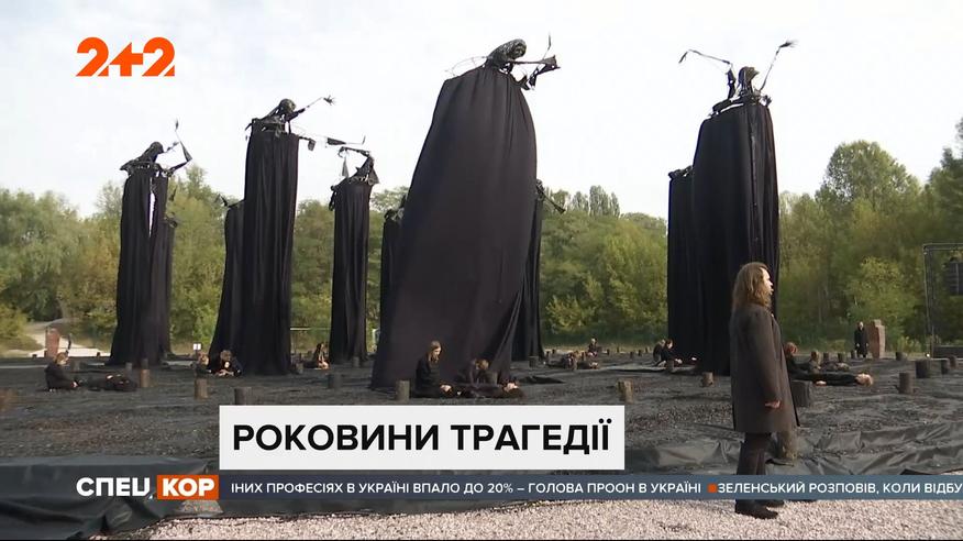 Саме цього дня у 1941 році окупаційна влада Третього рейху скликала всіх євреїв Києва на околицю міста і почала жорстоко розстрілювати. Сьогодні на цьому місці влаштували інсталяцію, яка символізувала смерть, що нависла над беззбройними людьми. Загалом у Бабиному Яру нацисти вбили 33 тисячі людей, головним чином євреїв. Повні випуски дивіться на 1+1 video