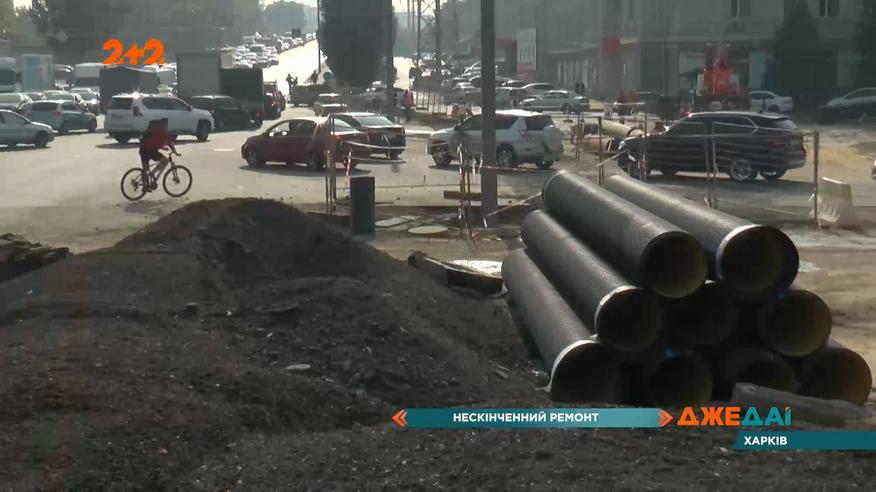 Ремонт, який неможливо закінчити. Шляховики перетворили життя харківських водіїв на суцільне пекло. Одна з головних транспортних артерій міста стала на ремонт, якому кінця-краю не видно. Обіцяли зробити все швидко та якісно, натомість вже кілька місяців техніка й робітники товчуться на одному місці. Що їх там так тримає, з'ясовували "ДжеДАІ". Повні випуски дивіться на 1+1 video
