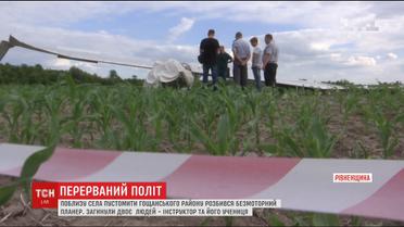 Загинули інструктор та 25-річна учениця. Багаторазовий чемпіон України з планерного спорту, досвідчений пілот цивільної авіації Микола Ковальчук робив ознайомлювальний політ. Його колеги помітили, що літальний апарат зник за деревами і впав на кукурудзяне поле. Після падіння дівчина була ще жива, утім, врятувати її медики не змогли.