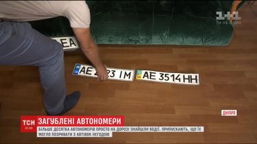 Більше десятка автомобільних номерів знайшли посеред дороги у Дніпрі