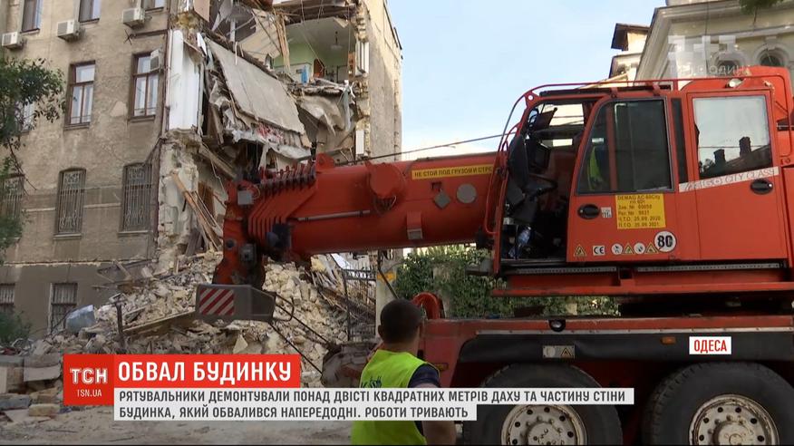 Вже більше доби одеські рятувальники разом з комунальниками ліквідовують наслідки обвалу частини 4-поверхового будинку, який посипався в ніч проти середи. Техніка і люди працювали усю ніч - робочі демонтували понад 200 квадратних метрів даху та частину стіни, що небезпечно нависали над ліквідаторами обвалу. Які плани на сьогодні у рятувальників та комунальників – у прямому включенні.