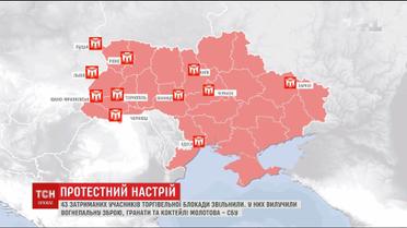 43 затриманих напередодні учасників торговельної блокади звільнили. У них вилучили вогнепальну зброю, гранати та коктейлі молотова. Після розгону редуту в Кривому Торці на Донеччині по Україні почались акції протесту. Вийшли люди від Харкова до Львова.