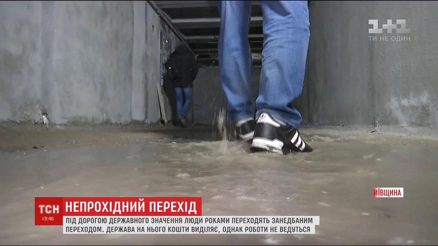Біля Глевахи люди роками переходять занедбаним переходом під дорогою державного значення