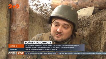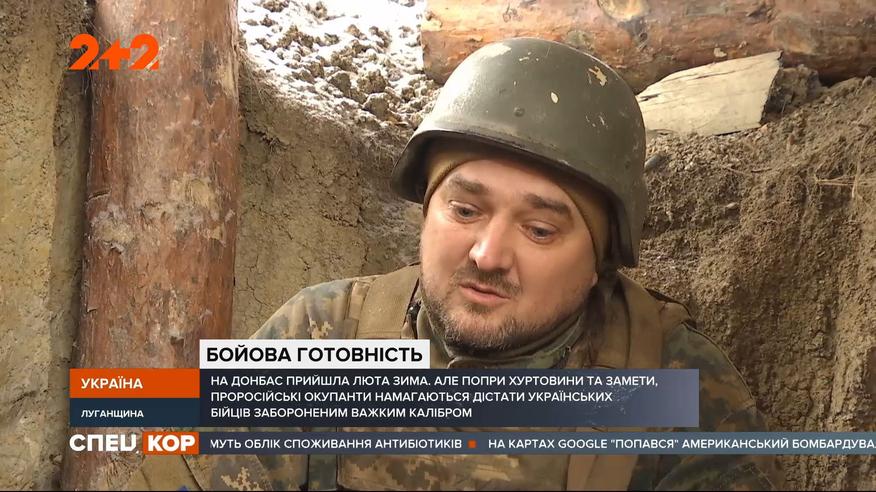 Фронт у заметах. На Донбас сьогодні прийшла сувора зима з морозами і заметілями, але попри негоду проросійські найманці намагаються дістати бійців збройних сил важким забороненим калібром. З мінометів і артилерії б’ють квадратами. Та й загалом біля позицій окупантів розвідка все частіше помічає і важку техніку, й заборонену зброю. Про це бійці розповіли Мар'яні Бухан.