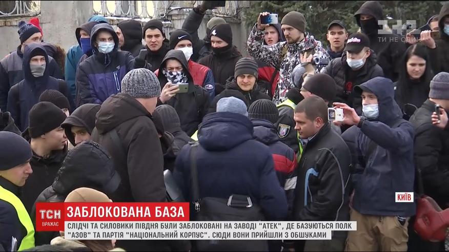 Правоохоронці намагалися провести обшук на їхній базі у столиці. Зрештою, силовиків ледь не силою виштовхали з території, яку орендують азовці. Дивом обійшлося без бійки.
