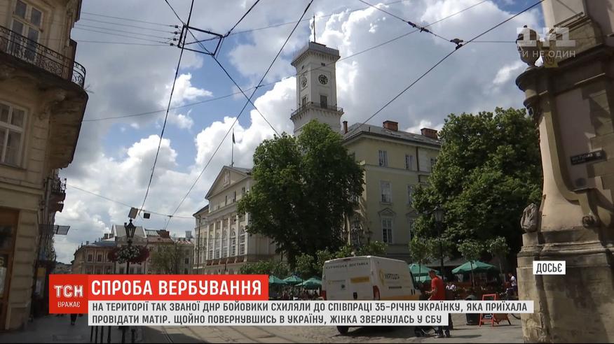На її очах катували людей, і таким чином схиляли її до співпраці. Бойовики так званої ДНР намагалися завербувати 35-річну українку. Жінка вдала, що готова, але щойно потрапила на підконтрольну Україні територію, звернулася до СБУ Львівської області. Вона розповіла, що поїхала в тимчасово окупований Донецьк провідати хвору маму. Там її затримали бойовики, нібито для перевірки документів. Жінка - переселенка, у Львівській області вона створила невелике підприємство і працевлаштувала ще кількох переселенців. За задумом терористів, вона мала збирати для спецслужб Росії інформацію про своїх співробітників - вихідців з Донбасу, а також про українських військовослужбовців, які мешкають у Львівській області. Більше про війну на Сході України