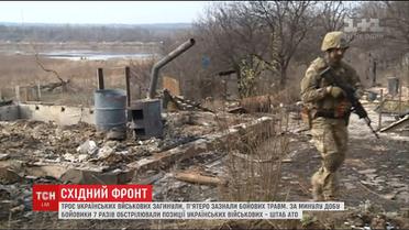 Троє бійців загинули, ще п'ятеро зазнали травм за минулу добу. Із мінометів 120-го калібру вони обстріляли позиції Збройних Сил біля селища Луганське на Світлодарській дузі. Понад годину тими ж самими мінометами гатили по околицях Авдіївки. Також з окупованого Донецька били по Пісках та Верхньоторецькому.
