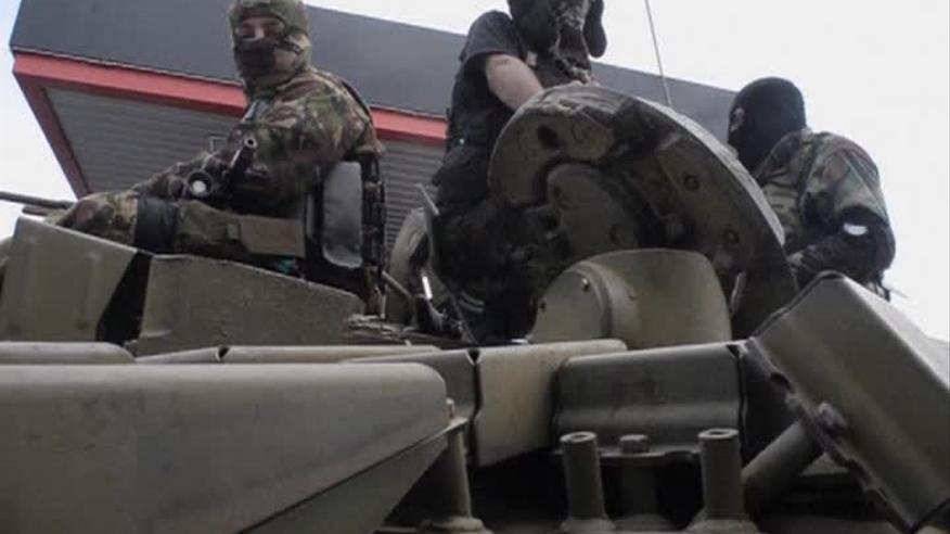 Колона танків заправившись на одній із автозаправок в Сніжному. При цьому бойовики, які їх супроводжували, пожалілися журналістам Associated Press, що українське телебачення називає їх терористами і заявили, що це брехня.