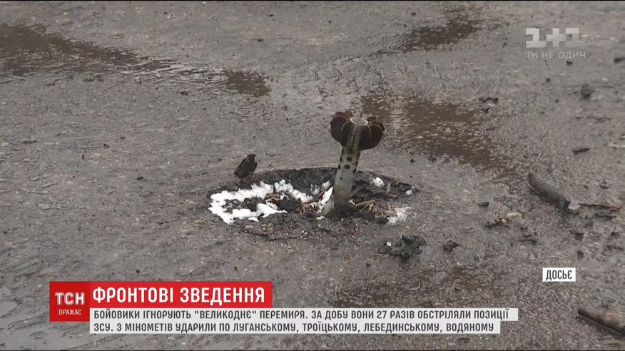 Майже три десятки обстрілів уздовж усієї лінії фронту. З мінометів великого калібру обстріляли Луганське, Троїцьке, Лебединське та Водяне. З гранатометів та стрілецької зброї окупанти веди вогонь уздовж усієї лінії фронту. Українські воїни від ворожого вогню не постраждали.