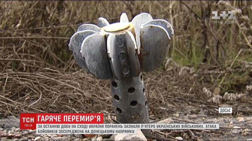 П'ятеро українських військових зазнали поранень. На Донецькому напрямку бойовики вогонь вели із мінометів, гранатометів та стрілецької зброї. Поблизу Широкиного застосовували протитанковий ракетний комплекс. На Луганщині обстріляли укріплення військових поблизу Новоолександрівки та Луганського.